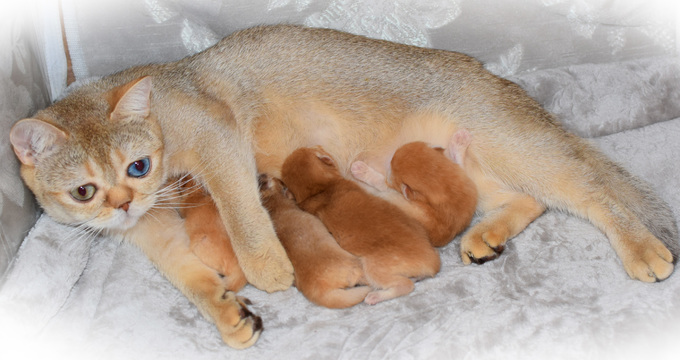 мамы AQUAREL (BSH by2563) и папы GENTLE FUZZIES GOLDEN MARLON (BLH cy12).