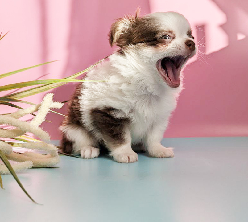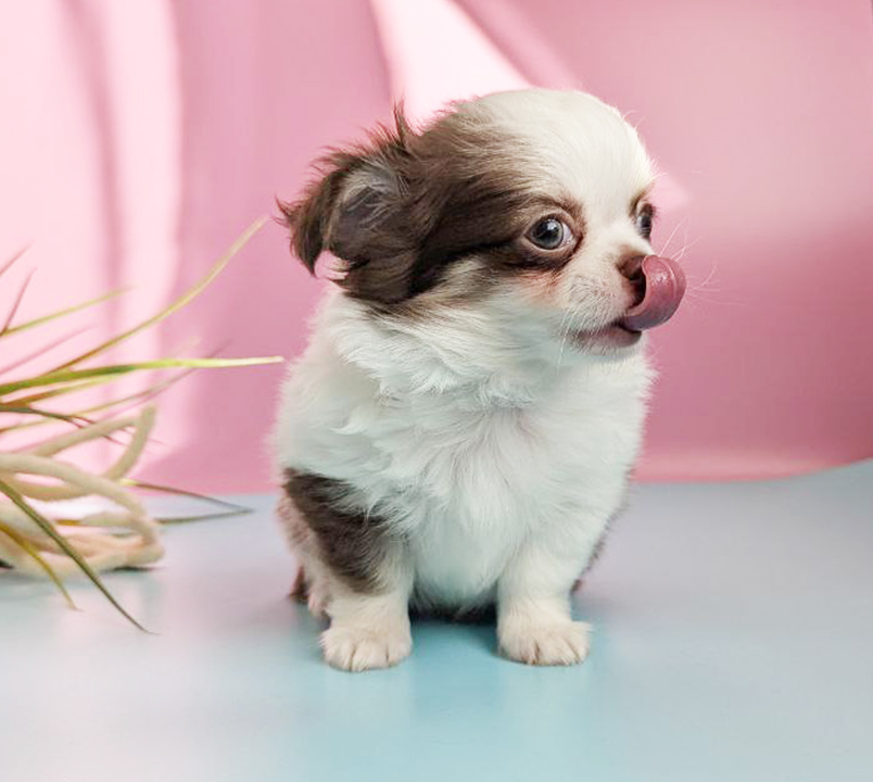 Чихуахуа – длинношерстный шоколадно-белый мальчик