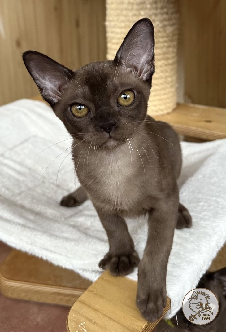 Котёнок Jessika — очаровательная девочка породы бурма, рождённая 29.08.2025. Малышка обладает выразительным соболиным окрасом, который подчёркивает породный тип: тёплый шоколадный оттенок шерсти, короткая и шелковистая текстура, а также большие, широко поставленные глаза насыщенного янтарного цвета. Jessika выглядит очень гармонично и уже сейчас демонстрирует отличные породные данные.