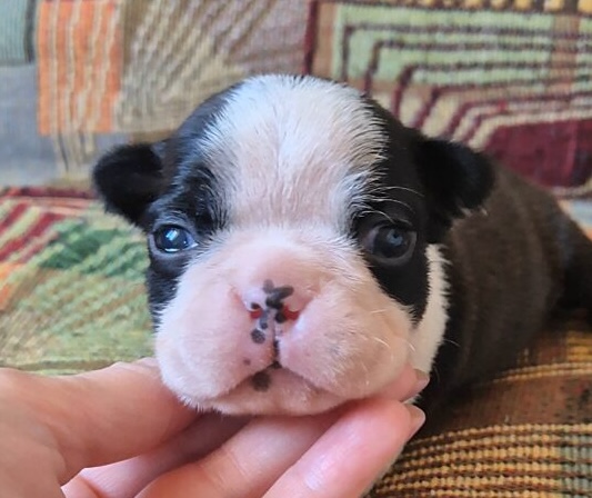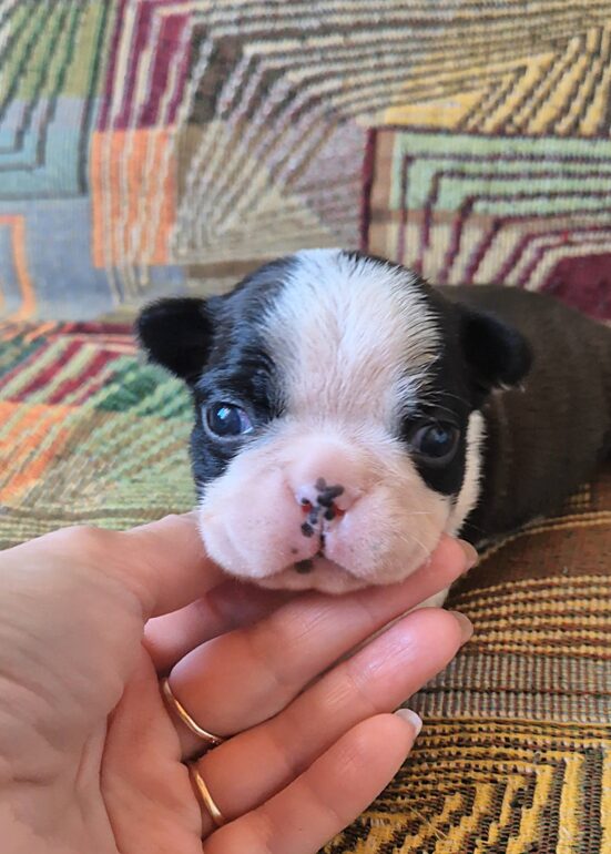 Открыты для резервирования два щенка. ТОЧНО В ЦЕЛЬ ЧУДЕСНЫЙ ДРУГ – мальчик, очень приятный по общему впечатлению, с тем самым живым, контактным взглядом, который сразу выдает хорошего бостона. ТОЧНО В ЦЕЛЬ ЧИСТАЯ ДУША – девочка, породная, аккуратная, с очень мягким и благородным выражением. Оба щенка интересны не только как домашние любимцы, но и как представители красивого, продуманного сочетания.
