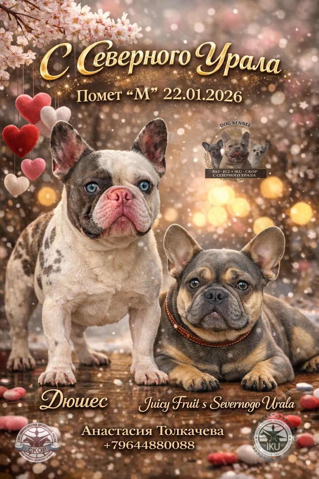 Отец щенка – Дюшес, мать – Juicy Fruit s Severnogo Urala. Для меня как для заводчика важно, чтобы за красивым окрасом и необычной шерстью стояла не случайность, а грамотная племенная работа. Во французском бульдоге я всегда ценю прежде всего правильный формат, крепкий костяк, хорошую линию верха, породную голову, корректный постав ушей и уравновешенный темперамент. Именно поэтому тем, кто планирует купить французского бульдога, я советую смотреть на щенка в целом, а не выбирать только по редкому признаку.