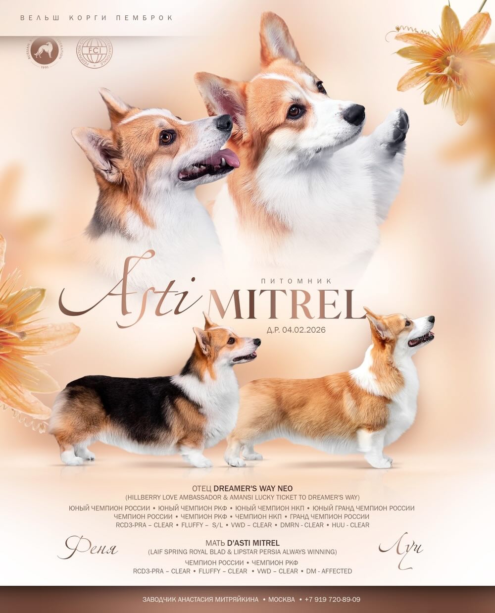 Щенок вельш корги пемброк 2026 готов к переезду. Для владельцев остаётся поддержка по кормлению, воспитанию, грумингу, передержке, хендлингу и кормам со скидкой питомника. По запросу можно получить фото, видео и отзывы владельцев выпускников.