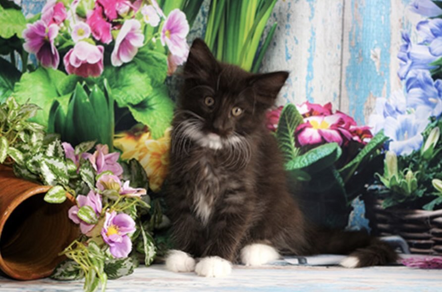 Norna – кошечка окраса n 09 22, чёрный мраморный с белым, носитель амбер-гена. Визуально это очень нарядный котёнок: контрастный мраморный рисунок, белые участки и будущая породная «лесная» выразительность. Такой котенок черно-белый мрамор смотрится эффектно уже в детстве, но по-настоящему раскрывается с возрастом, когда формируются воротник, хвост и плотная сезонная шерсть.