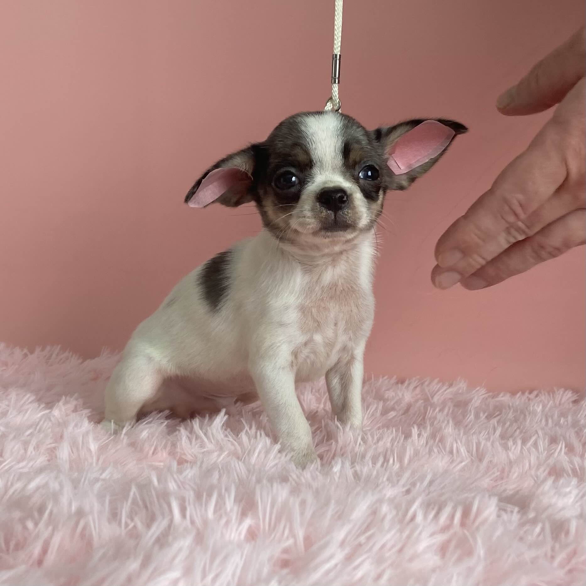 Паскаль – щенок из тех, кто запоминается сразу. У него очень интересный рисунок окраса, нарядный внешний вид и тот самый живой взгляд, который так ценят любители породы. Но для меня гораздо важнее, что в нем есть породная цельность. Хороший чихуахуа должен быть компактным, уверенным, без излишней хрупкости, с красивой головой и правильной психикой. Такой щенок остается интересным не только в детстве, но и по мере взросления.