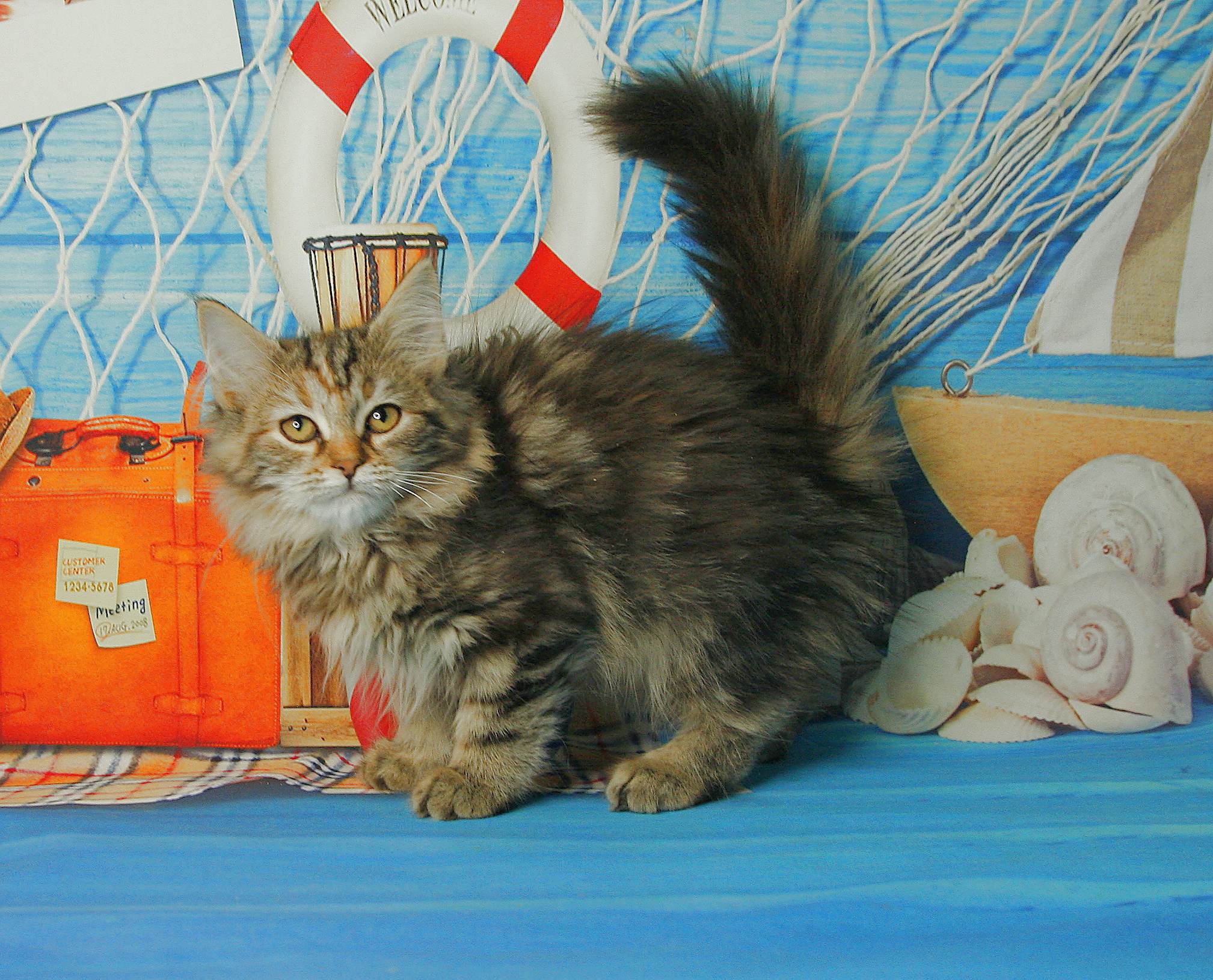 Юма — кошечка с характером, полным мягкости, интеллекта и природной грации. Она очень внимательная, наблюдательная, любознательная и дружелюбная. С первых дней проявляет уверенность и хорошую социализацию: любит играть, с удовольствием идёт к человеку, прекрасно взаимодействует с окружающей средой. Её пластичные движения, выразительные глаза и пушистый хвост делают её по-настоящему красивой маленькой сибирской принцессой.