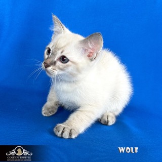 Предлагается к резервированию роскошный мальчик Wolf Kevin Golden Truffle — породный котенок меконгского бобтейла окраса blue tabby point. Малыш относится к классу show-castrat-class, что говорит о высоком породном уровне, правильном типе и выразительных данных. Это гармонично сложенный, крепкий и очень перспективный котенок с яркой индивидуальностью.