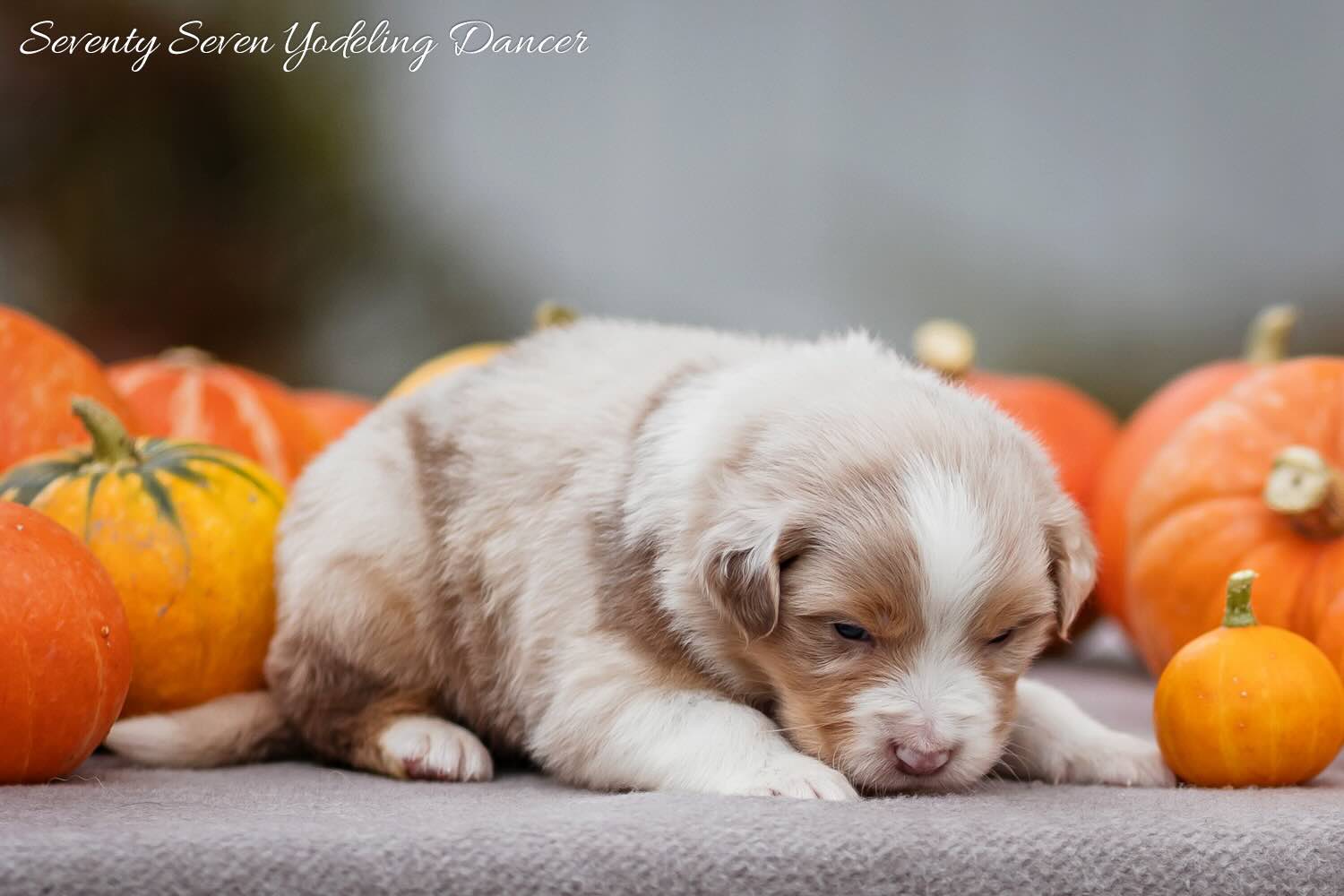 Seventy Seven Yodeling Dancer – кобель красный мрамор. Породный формат, плотная шубка, выразительная мордочка и живые «аусси-глазки». Взгляд внимательный, контакт мгновенный – любит работать головой и хвостиком одновременно. Прекрасно подойдёт для активной семьи, прогулок, кинологических занятий, ОКД-базы и трюков.
