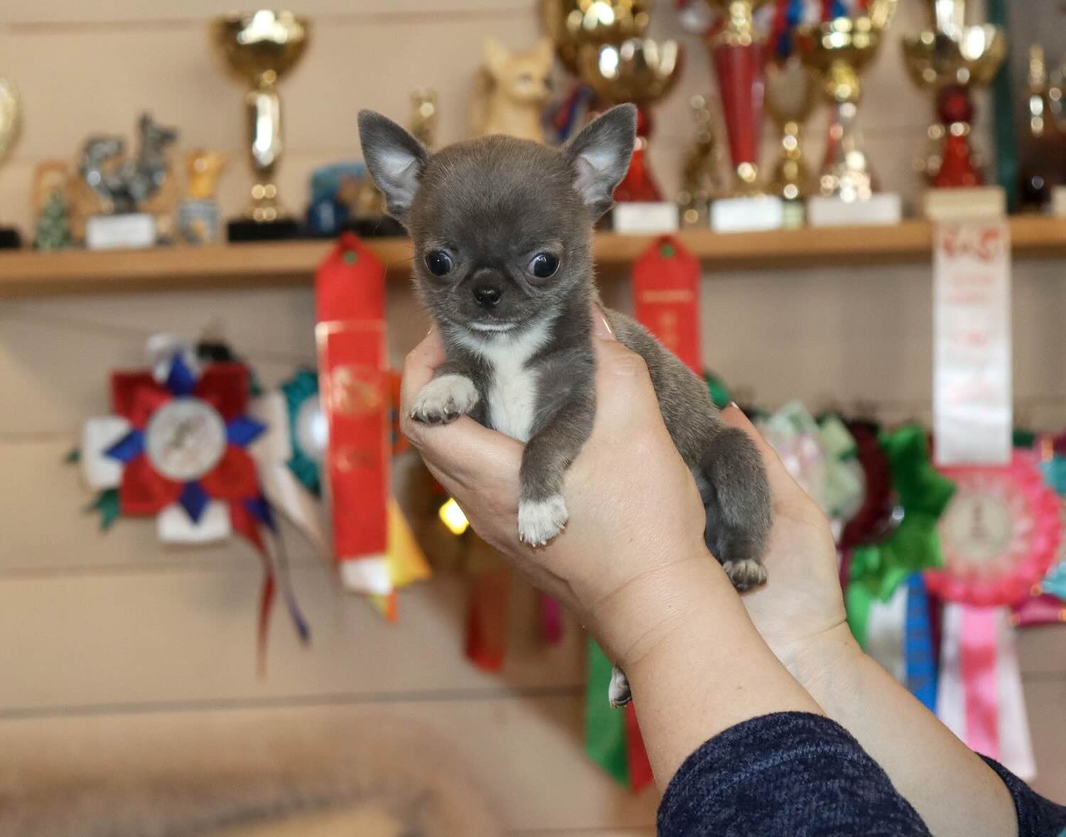 Для меня как для заводчика особенно важно, когда мини формат сочетается не с хрупкостью, а с правильным породным балансом. Хороший чихуахуа должен быть гармоничным, с красивой головой, компактным корпусом, уверенным темпераментом и живым, осмысленным взглядом. Каролинка Сью именно из таких щенков – очень нарядная, аккуратная по формату и с тем самым породным очарованием, которое не теряется по мере взросления.