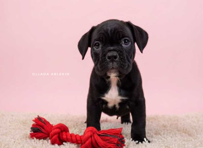 В помёте свободна сука чёрного окраса, перспективная по экстерьеру и происхождению, с выраженным породным типом и стабильной психикой.