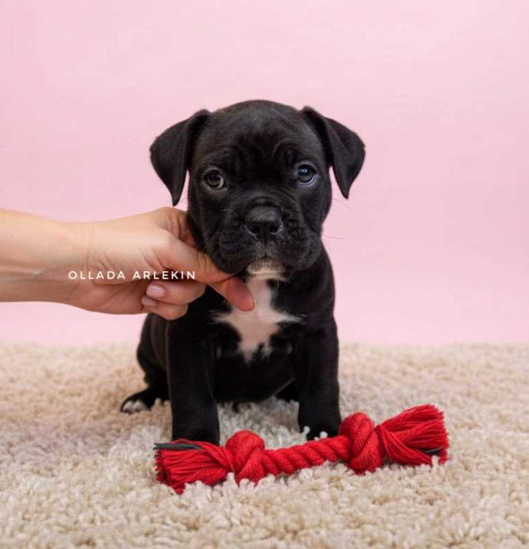 Кобель имеет пожизненный допуск в разведение (Т1), что говорит о его полном соответствии породному стандарту, корректной анатомии, устойчивой психике и правильном поведении. Оллада Арлекин Юстас демонстрирует уверенность, уравновешенность и надёжный характер, типичный для настоящего кане корсо — спокойный, внимательный к владельцу и собранный в любой обстановке.