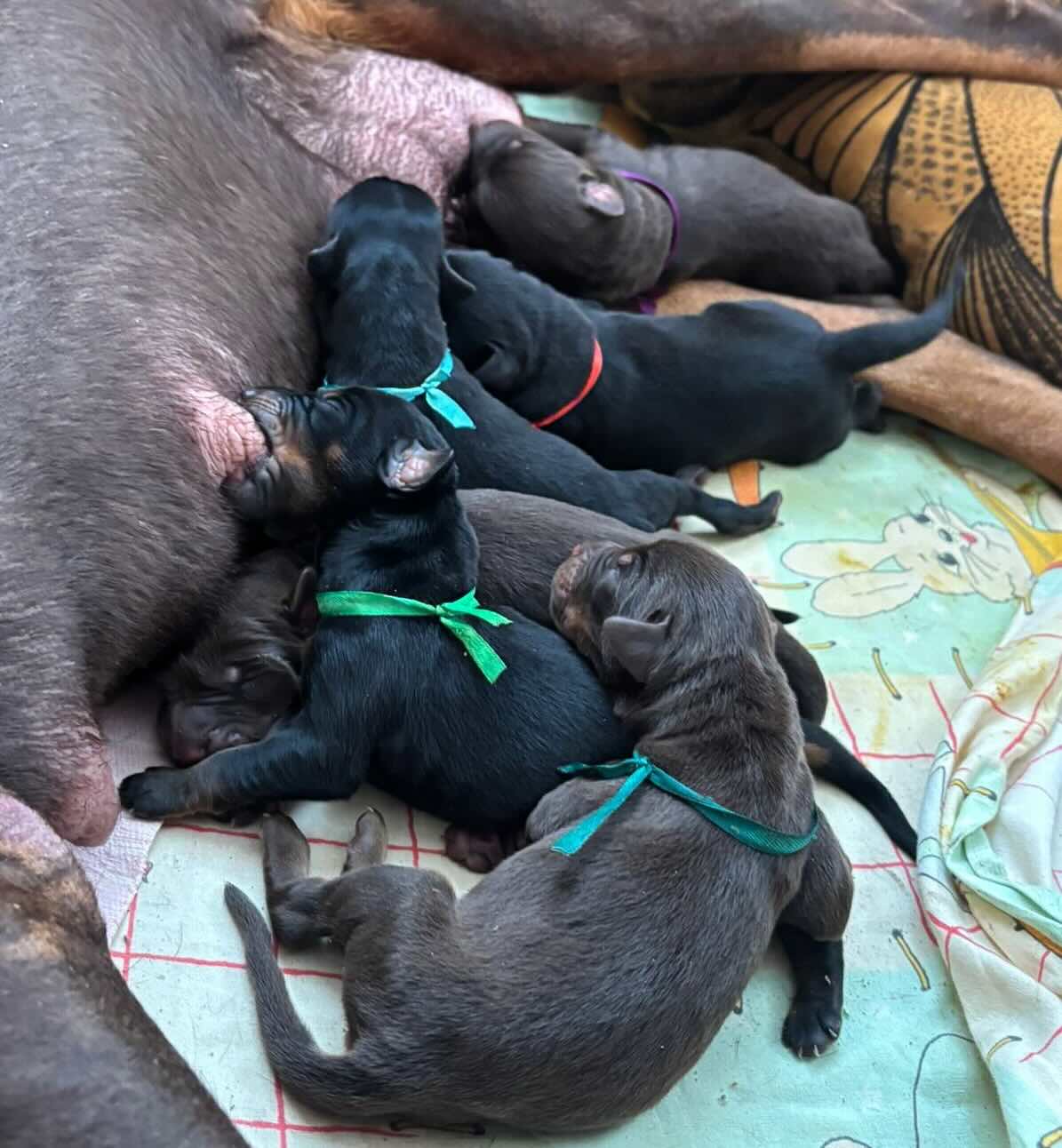 3 черно-подпалых кобеля, 3 коричнево-подпалых кобеля, 1 черно-подпалая сука, 2 коричнево-подпалые суки. Малыши растут дома, слышат бытовые звуки, знакомятся с новыми людьми и игрушками. К двум месяцам проходят актировку и готовы к переезду.