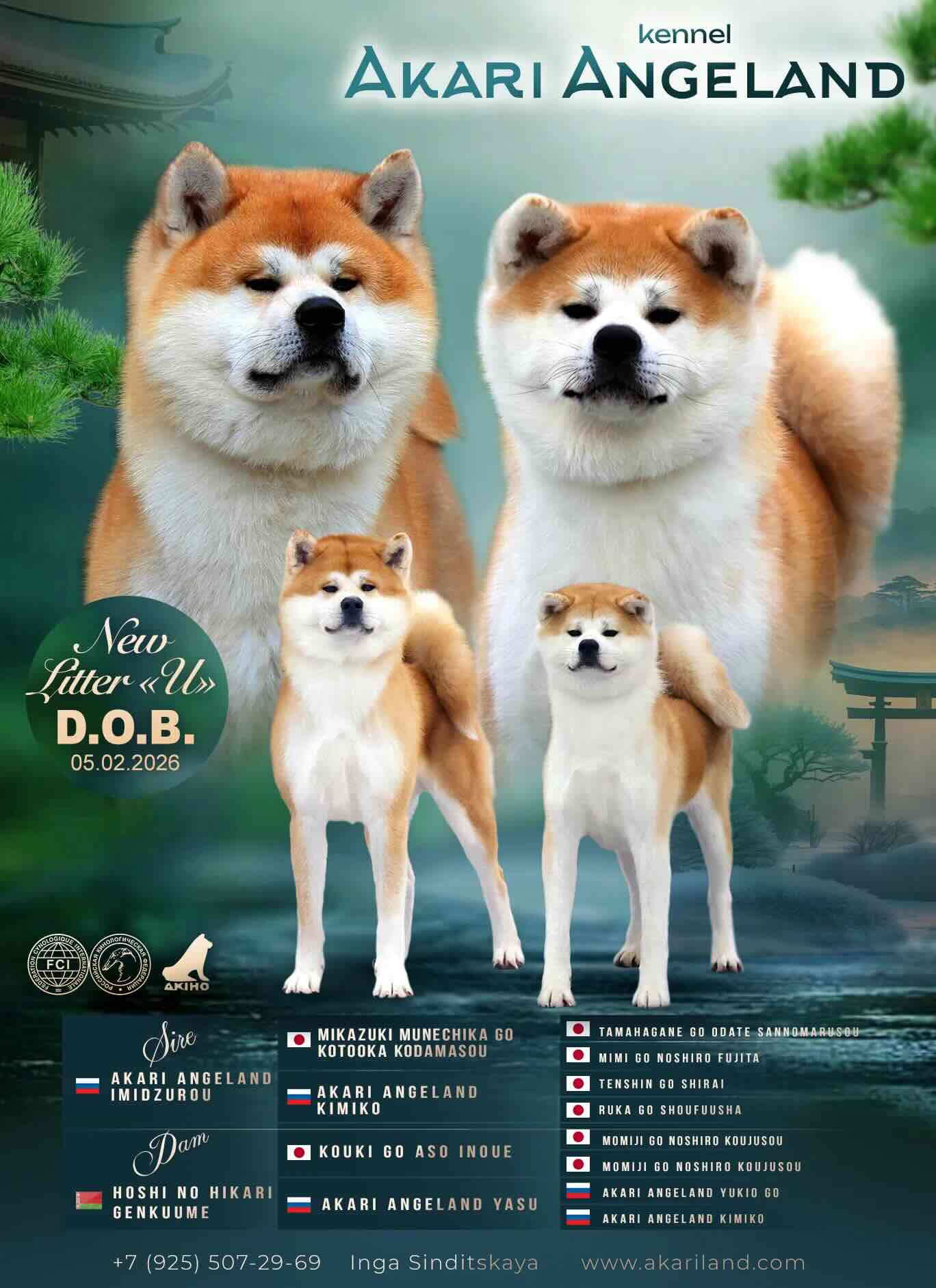Akari Angeland – редкий помет «U»: остались всего 3 щенка, происхождение подтверждено РКФ/FCI и AKIHO