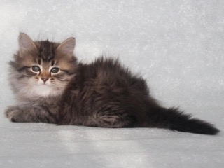 Нелли — девочка эффектного окраса чёрный пятнистый (f 24). Её пушистая, густая шерсть с ярким рисунком подчёркивает породный тип, а выразительный взгляд придаёт образу особое благородство. Это котёнок с гармоничным телосложением, крепким костяком и правильными пропорциями, что полностью соответствует стандартам сибирской породы.