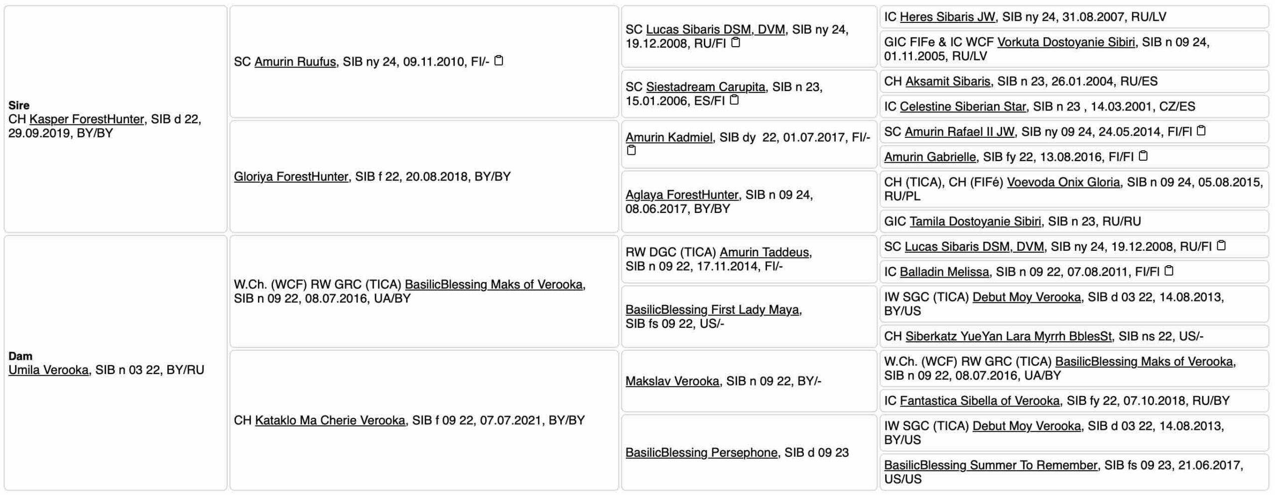 Такая производительница является сердцем питомника: стабильный тип, отличная породная голова, объёмная шуба и спокойный характер делают Фросю важной частью племенной программы. Каждый её котёнок получается крепким, уравновешенным и невероятно красивым — настоящие маленькие сибиряки «на вырост».