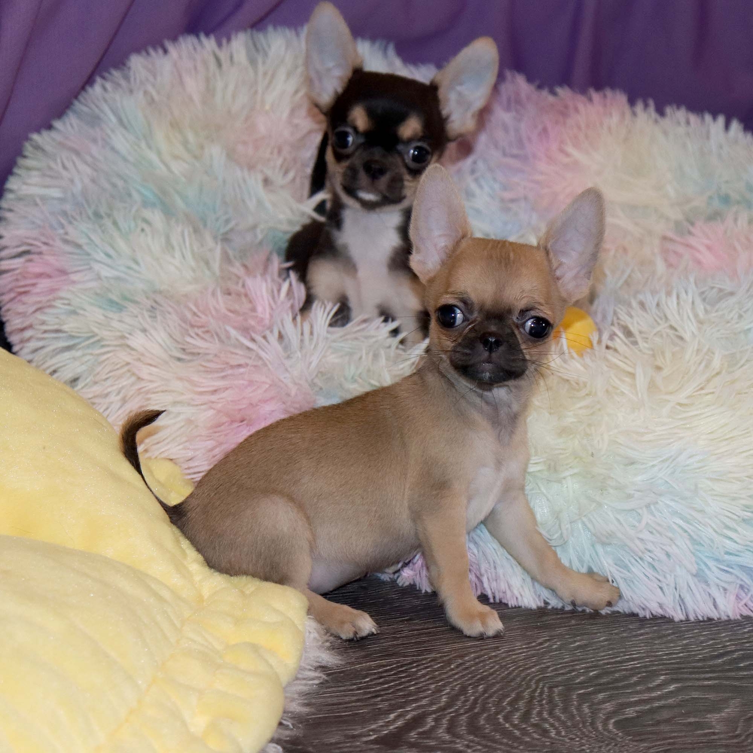 Гладкая шерсть не требует сложного ухода, а компактный размер позволяет комфортно содержать чихуахуа в квартире и брать с собой в поездки. Иванна Голд станет настоящей маленькой подругой и украшением вашего дома.