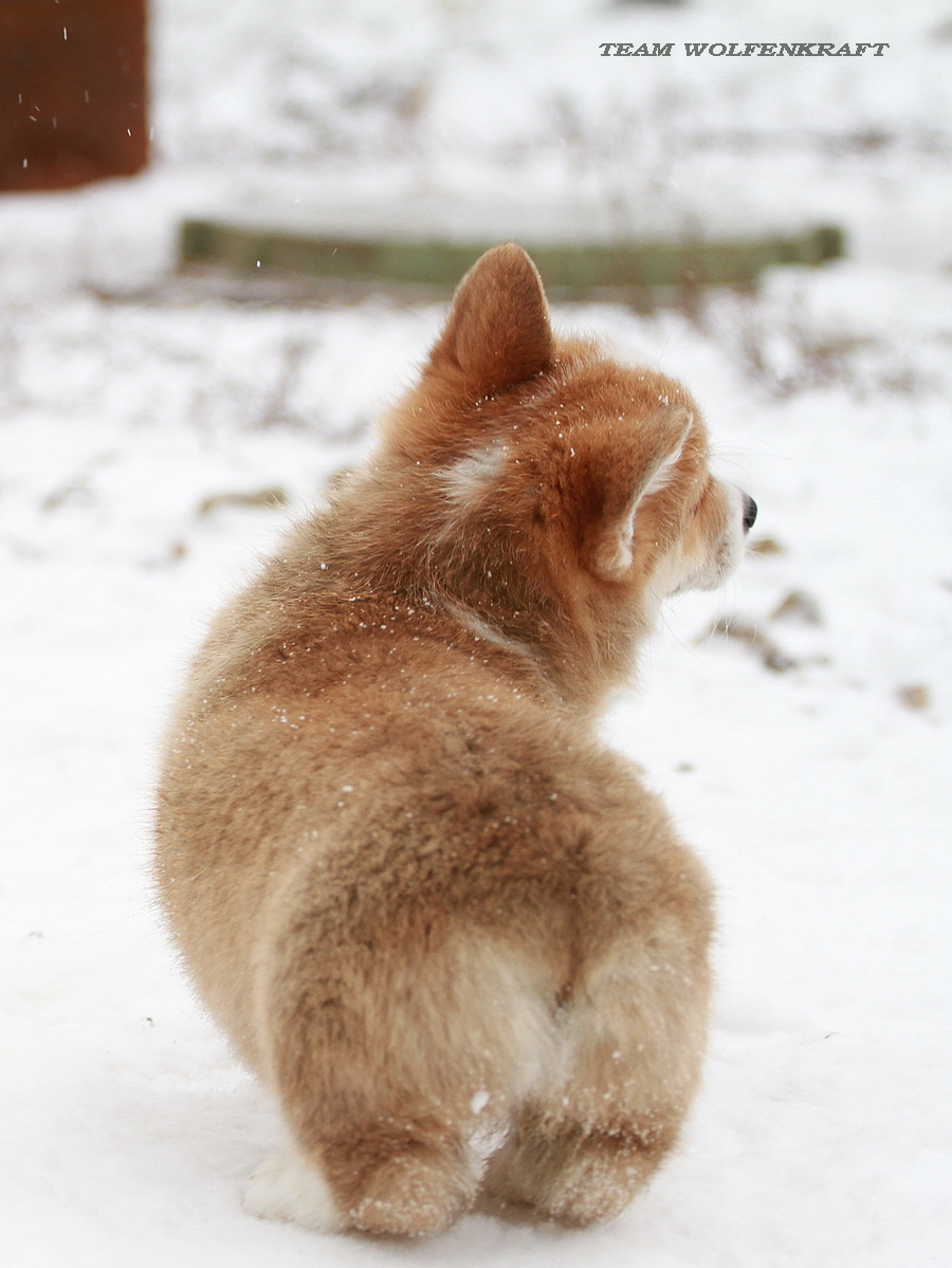 Малышка имеет гармоничное телосложение, крепкий костяк, правильные углы и выразительную «коржичью» мордочку. Уже сейчас заметны отличные пропорции, сильная спина и хороший формат, что позволяет рассматривать девочку как перспективную не только для домашнего содержания, но и для выставок. Окрас насыщенный, шерсть плотная, с хорошим подшёрстком — полностью соответствует стандарту породы.