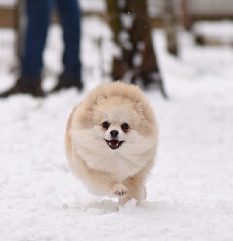 Голова породная, с мягким, гармоничным переходом, хорошим наполнением морды и аккуратной длиной. Уши маленькие, высоко поставленные, глаза выразительные, с тёплым и внимательным взглядом. Общее выражение очень приятное — без резкости, с характерной «улыбкой», которая делает померанцев такими привлекательными.