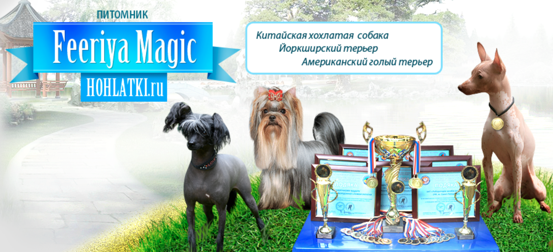 Питомник «Feeriya Magic» — это профессиональное заведение с более чем 30-летней историей, официально зарегистрированное в системах РКФ и FCI. Мы специализируемся на разведении китайской хохлатой, йоркширского терьера и американского голого терьера — собак, которые стали воплощением нашей страсти и преданности кинологии.