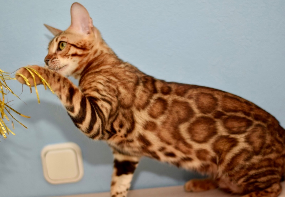 Если вы хотите купить бенгальскую кошку, мы поможем выбрать между яркими контрастными розетками на серебре, тёплым золотом и эффектным снежным окрасом. Продажа бенгальской кошки из питомника проходит по договору, с ветеринарным контролем и посткураторством, мы остаёмся на связи столько, сколько нужно вашей семье.