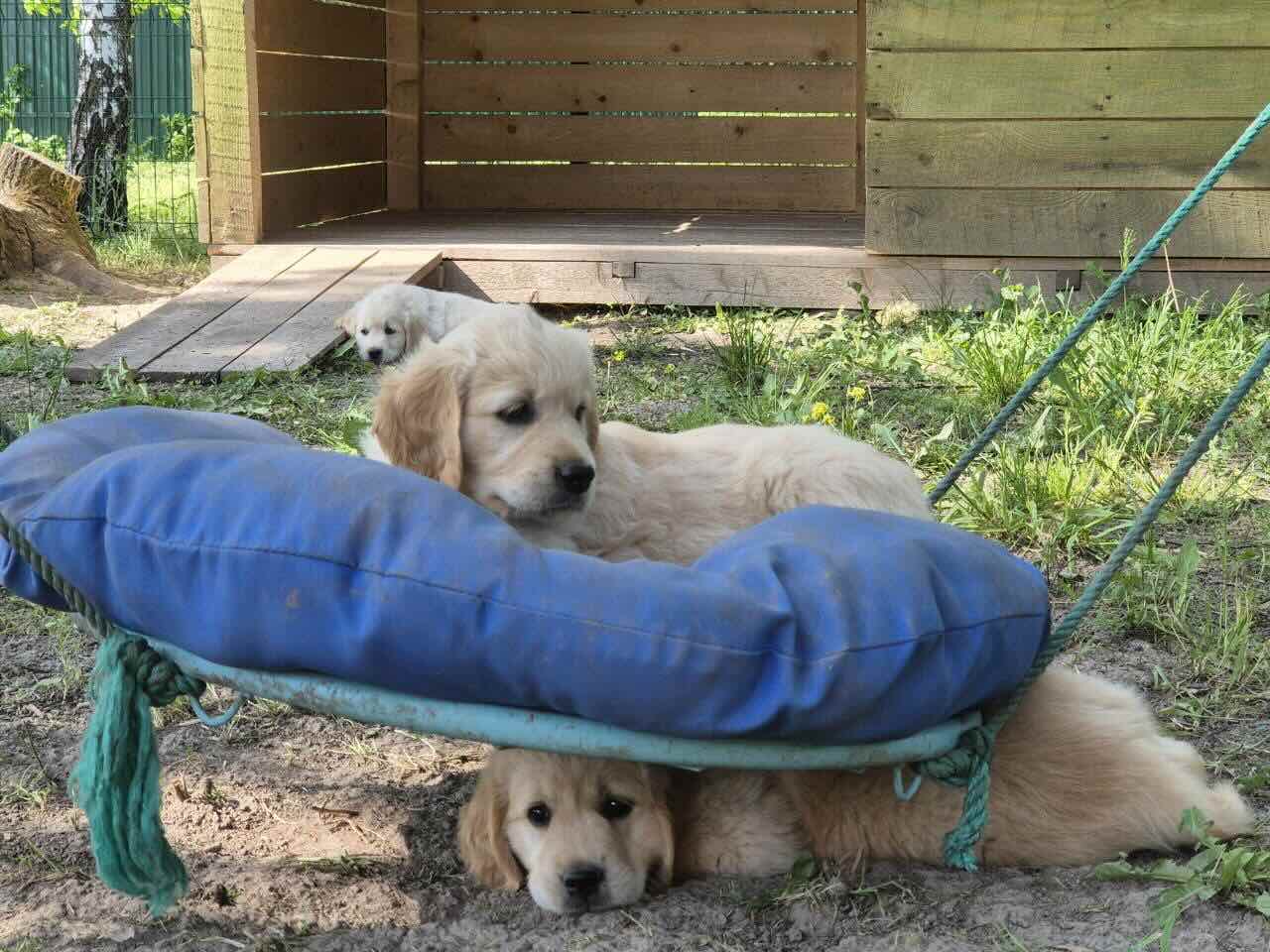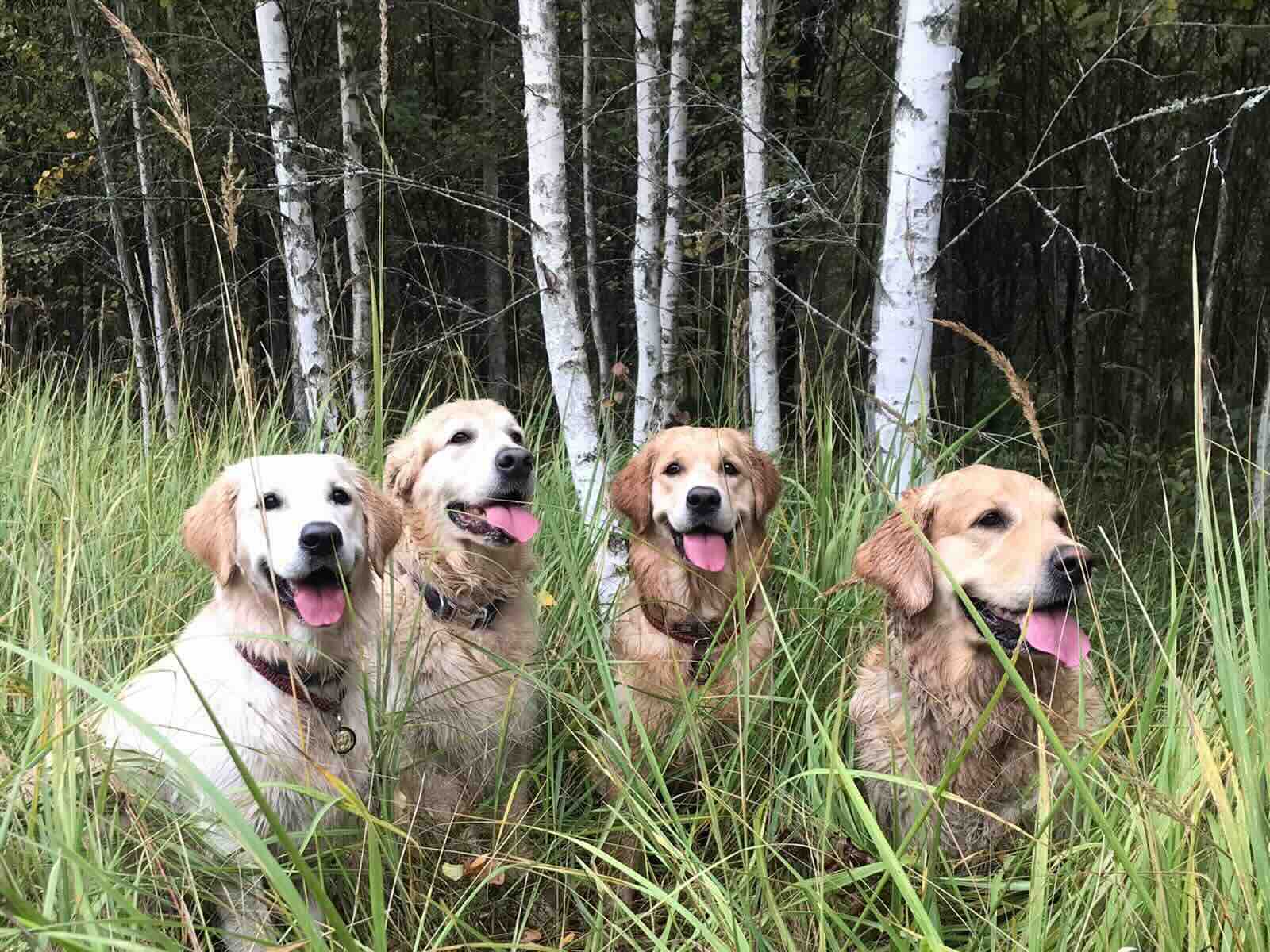 Сегодня в питомнике живут четыре золотистых ретривера – кобель и три суки. Родоначальница линии – Аврора (Riera Liliana), собака с сильной генетикой и красивой историей: она родилась от выездной вязки в Нидерланды и несёт в себе линии выдающихся предков. Аврора вырастила три помёта и передала щенкам лучшие качества – правильный экстерьер, стабильный характер, мягкую уверенность и ту самую “золотую” контактность, за которую породу выбирают сердцем. Две её дочери остались дома – Селена и Юнона. Персей – первый голден в нашей семье и настоящий нянь для щенков: умный, благородный, внимательный к людям и малышам.