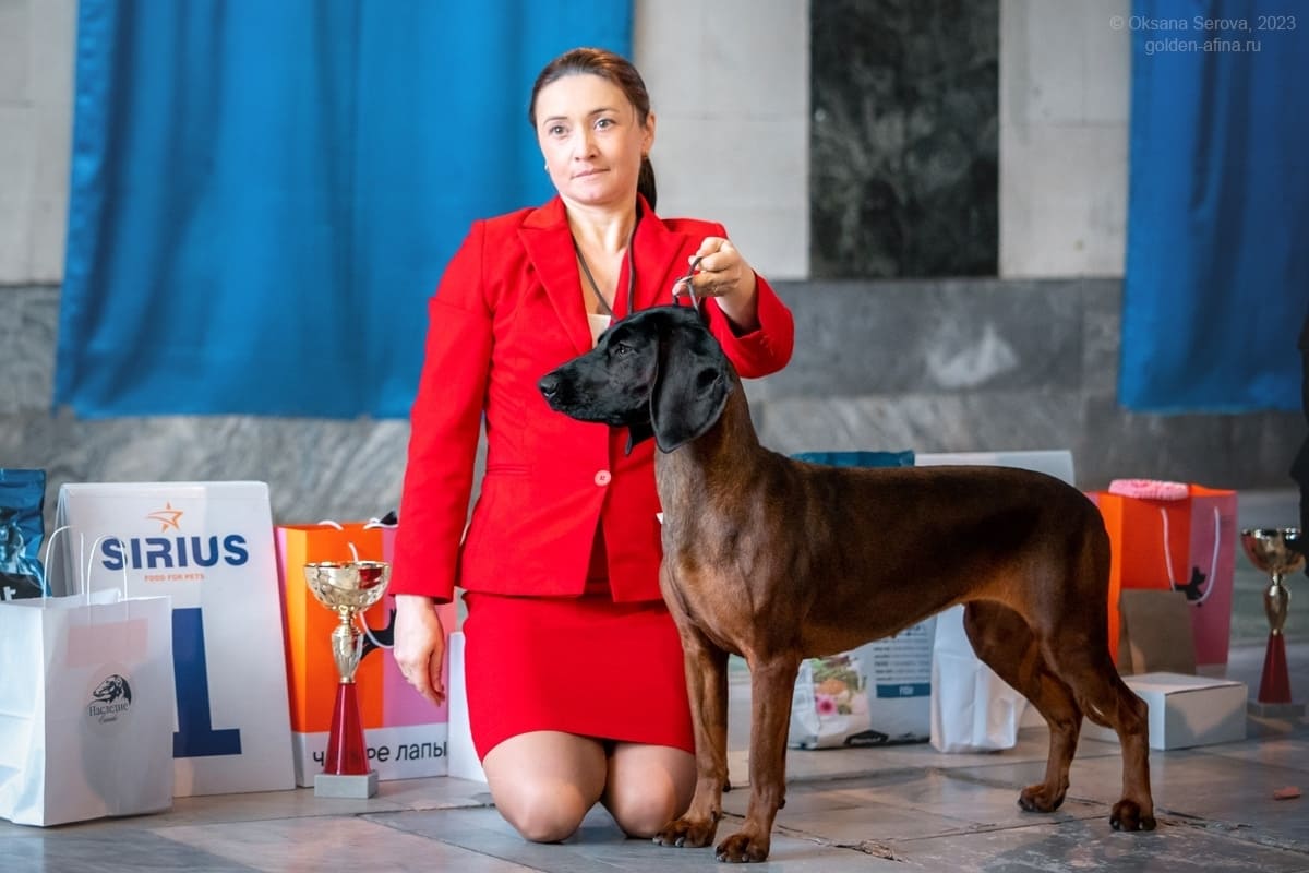 Как производитель, она представляет для нас большой интерес. Ее генетика позволяет работать с редкими окрасами, не теряя при этом породного типа. Мы ожидаем от нее потомство с крепким костяком, выразительной головой, правильной текстурой шерсти и устойчивым темпераментом. Для нас важно не только получить эффектный окрас, но и сохранить баланс экстерьера и характера.